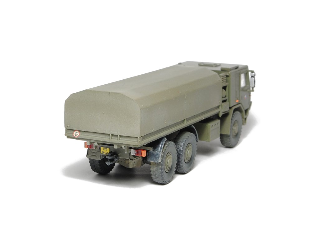 Kompletní plastiková stavebnice těžkého nákladního automobilu. Obsahuje probarvené plastikové výlisky na sestavení modelu, kovové osičky, leptané doplňky a sadu obtisků.